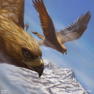 Plus intelligents et plus gracieux que les Faucons de Guerre, leurs petits cousins qui vivent plus bas dans les montagnes, les Grands Aigles sont des créatures qui exercent une vigilance de tous les instants, et qui nourrissent une haine intarissable pour les bêtes maléfiques. Ils abhorrent toutes les races à peau verte, car les Orques massacrent ou font fuir les troupeaux de chèvres des montagnes qui sont leurs proies naturelles et les Gobelins considèrent les œufs des Grands Aigles comme une gourmandise rare et délicate. Ils piquent sur l’ennemi pour le lacérer de leurs serres dotées de griffes tranchantes à l’extrême avant de s’envoler haut dans les cieux, hors de portée de ses armes. Affichant une envergure dépassant les neuf mètres, les Grands Aigles sont assez grands pour qu’ils puissent, s’ils le souhaitent, consentir à permettre à un Elfe de confiance de les utiliser comme montures. Car comparés aux Griffons, ou même aux Coursier Elfiques, les Grands Aigles sont très intelligents et n’ont pas besoin d’un entraînement spécial, et encore moins d’un moyen de coercition, pour combattre.