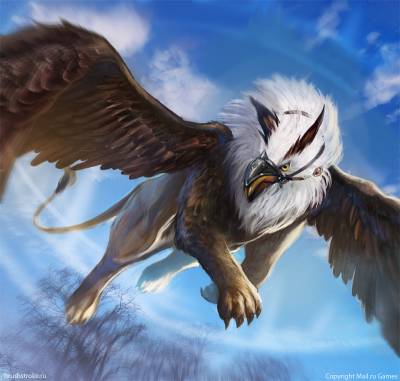 Avec la tête, les ailes et les serres d’un oiseau de proie géant, le corps d’un lion et faisant deux à trois fois la taille d’un cheval adulte, les Griffons sont indubitablement des créatures nées de l’énergie mutatrice du Chaos. Cependant, bien qu’ils soient d’énormes monstres, les Griffons sont considérés comme de nobles créatures. Cela est dû à leur port altier, ainsi qu’au fait que ce ne sont pas des tueurs voraces et frénétiques. Au contraire, un Griffon frappe avec célérité et grâce, avec des gestes précis. Toutefois, cette élégance n’entame en rien sa dangerosité : leur bec crochu peut facilement sectionner un membre humain, et leurs griffes - qui rappellent les serres d’un faucon - restent tranchantes grâce à des séances régulières de limage contre la roche. Les Griffons sont des combattants habiles et efficaces, qui ne tuent pas sans discernement, même s’ils sont prompts à protéger leur territoire ou à traquer le gibier. Ils sont féroces et impitoyables, mais jamais cruels.