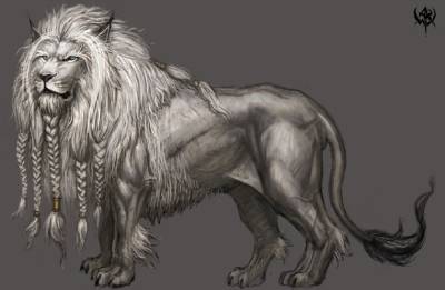 De toutes les bêtes qui rôdent dans les forêts mystérieuses du royaume Elfique de Chrace, les Lions Blancs, sont les plus célèbres. Ces terrifiants félins sont d’impitoyables prédateurs dotés d’une musculature puissante et d’un esprit rusé. S’ils sont presqu’aussi hauts que des Coursiers Elfiques, les Lions Blancs sont bien plus forts : ils peuvent aisément sectionner un membre d’un coup de griffe et broyer la tête d’un homme, même casquée, entre leurs mâchoires garnies de crocs tranchants. Lorsqu’une troupe part en chasse, personne ne peut se prétendre hors de danger. D’instinct, Ie groupe se coordonne pour battre les bois en quête d’une proie. La loyauté d’un Lion Blanc à son clan est légendaire, de même que son incroyable férocité au combat, et a inspiré de nombreuses chansons aux poètes d’Ulthuan. Les gardes du corps du Roi Phénix, les Lions Blancs, tirent une grande fierté du nom qu’ils ont adopté. Des histoires relatent l’attaque de caravanes de marchands par des groupes de Lions Blancs, et même de villages isolés s’ils sont poussés par la faim. Il n’est donc guère étonnant que de nombreux poèmes, ballades et chansons mettent en garde contre ces animaux. Les Lions Blancs représentent une telle menace que les habitants de Chrace sont forcé d’organiser des battues pour les repousser au cœur des forêts. La traque tourne souvent en défaveur des Elfes, car les arcs, les haches et les lances sont bien futiles face à la force brute et à la férocité de ces félins, et seule l’expérience du chasseur lui donne une chance de survie. Cependant, les Hauts Elfes ne voient pas les Lions Blancs comme des créatures mauvaises, mais davantage comme des bêtes sauvages qu’il convient de craindre et de respecter, voire de nourrir à l’occasion, comme le font les chasseurs de Chrace, parfois à leurs dépens. Les chasseurs découvrent parfois des lionceaux, et il n’est pas dans la nature Elfique de tuer des proie sans défenses. Ces jeunes félins deviendraient sans doute des bêtes sauvages s’ils parvenaient à survivre dans la nature, mais si ils sont pris assez jeunes, ils peuvent être dressé et devenir aussi loyaux qu’un Griffon. Ils sont alors élevés de la même façon qu’un coursier Elfique ou qu’une autre créature aussi noble, jusqu’à ce qu’une véritable empathie voie le jour entre le dresseur et son lion.