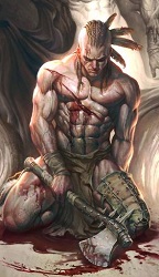 Ses muscles étaient aussi durs que la pierre et magnifiquement sculptés, la perfection de sa silhouette n’étant gâchée que par les nombreuses cicatrices dont son torse était couturé. Toutes ces blessures sautaient aux yeux, si bien qu’il paraissait clair que ce guerrier avait affronté de nombreux ennemis sans jamais battre en retraite.