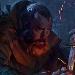 Outre son caractère impulsif, un autre problème, beaucoup plus majeur, venait troubler la vie de leur petite famille. Le benjamin avait disparu lorsqu’ils étaient jeunes, emporté par une damemoiselle de la fée enchanteresse. Même si la disparition du plus jeune l’inquiétait et qu’il eut beaucoup de mal à s’en remettre, Régil apprit à l’accepter en grandissant. Il avait confiance en la Dame et savait au fond de lui qu’il était forcément en sécurité. Les fidèles d’une déesse aussi bénévolante n’oserait jamais faire de mal à un enfant, non ? D’un naturel beaucoup moins pieux, il en était tout autre pour son frère, pour qui cette disparition le rongea dès les premiers instants. Il le vit grandir, continuellement frustré et toujours à la recherche de réponses. Comment pouvait-il lui en vouloir ? Il aurait probablement agi de la même façon s’il n’avait pas eu la foi. Malheureusement, après plus d’une dizaine d’années, ce fut la goutte de trop lorsqu’Arnaud n’obtenu pas de réponses dans sa petite enquête. Poussé à bout, son frère tua un barde en visite dans leur petite bourgade. Il fut rapidement jugé par un chevalier du Graal de passage. Régil n’hésita pas et fut le premier et le seul à intercéder en sa faveur. Il proposa les services de son frère et lui au seigneur, lors d’un pèlerinage forcé. Il n’était bien sûr pas question de laisser tomber son cadet. En tant qu’aîné, il était de son devoir de veiller sur lui et de le remettre dans le droit chemin. En tout cas, c’est ce qu’il se disait, mais au final, une question se posait ; l’avait-il vraiment fait pour son frère ? Ou espérait-il peut-être enfin assouvir ses désirs religieux et sortir d’une vie paysanne particulièrement monotone ? Le temps nous le dira.